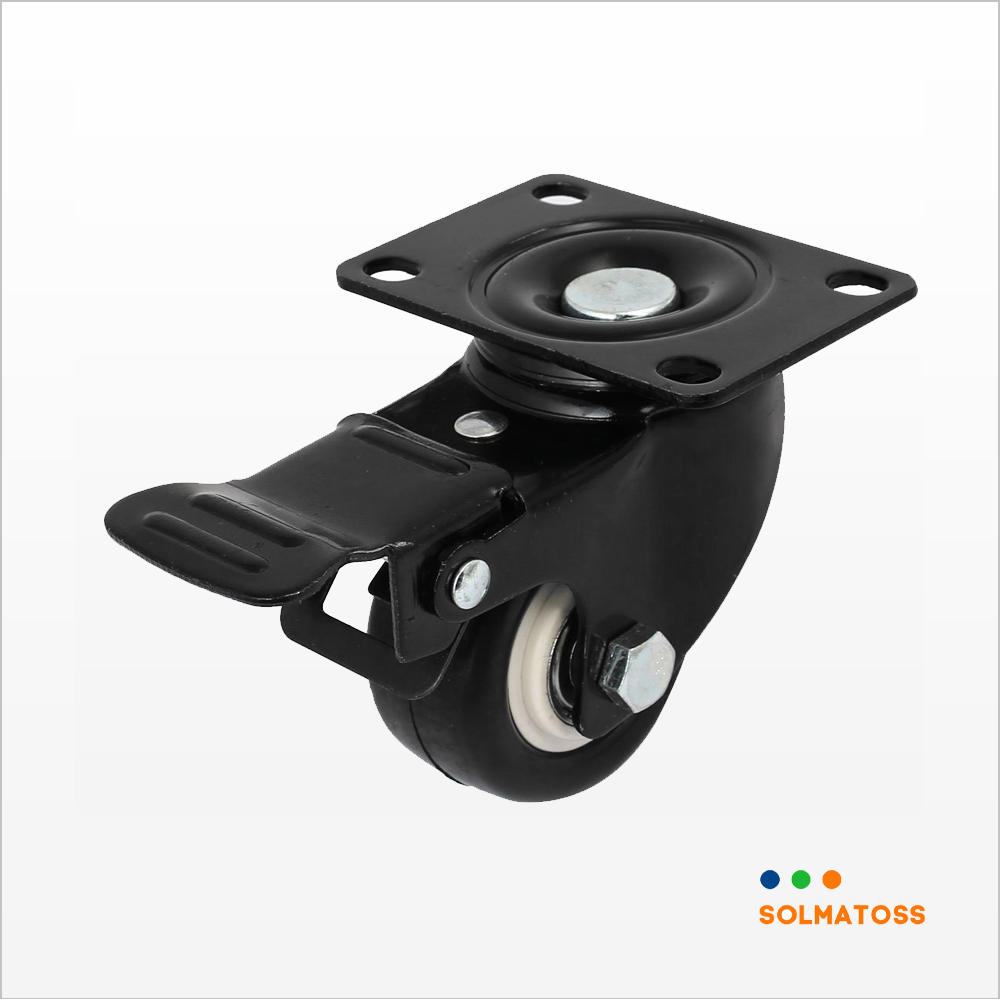 Roda Pedestal Hitam 2 Inch - Hidup (Swivel) + Rem