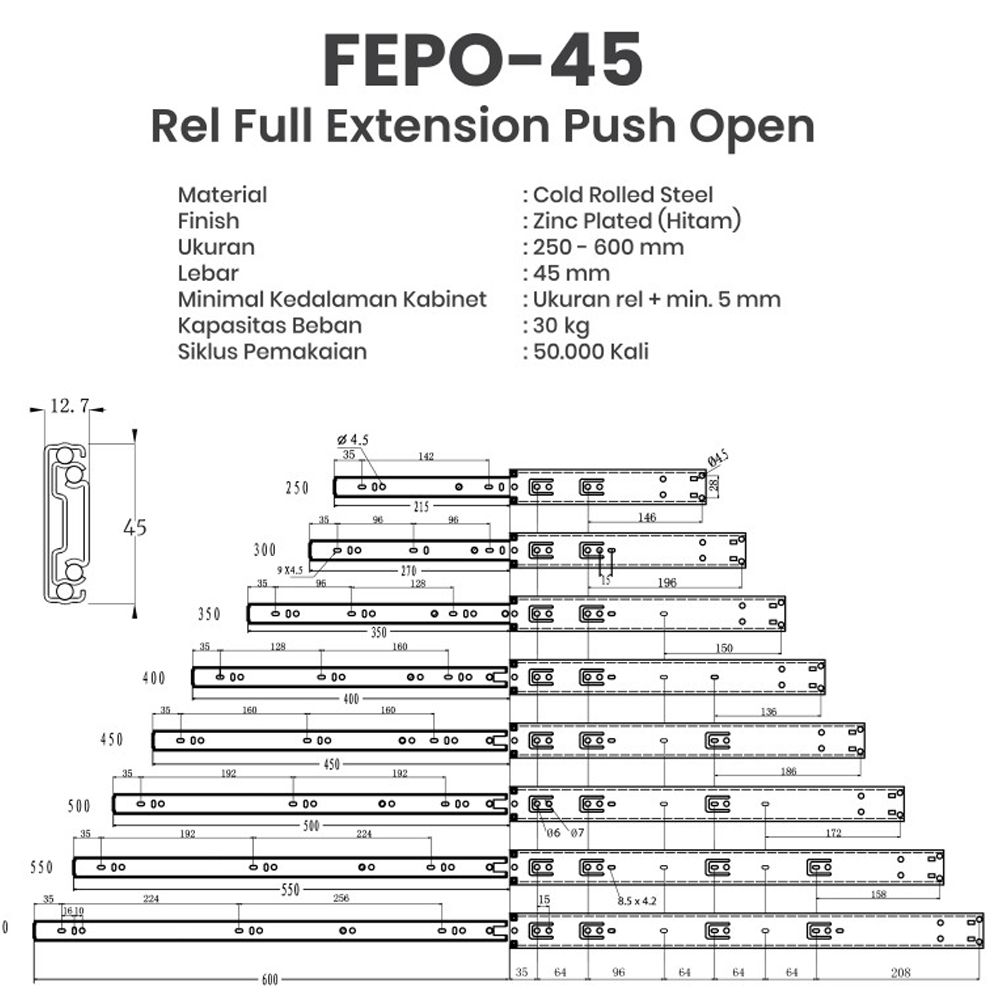 Ukuran : 250, 300, 350, 400, 450, 500, 550 & 600 mm