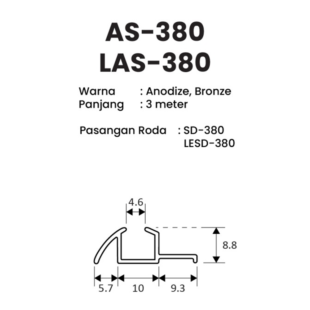 Profil Aluminium Huben 3 meter AS-380 Bronze