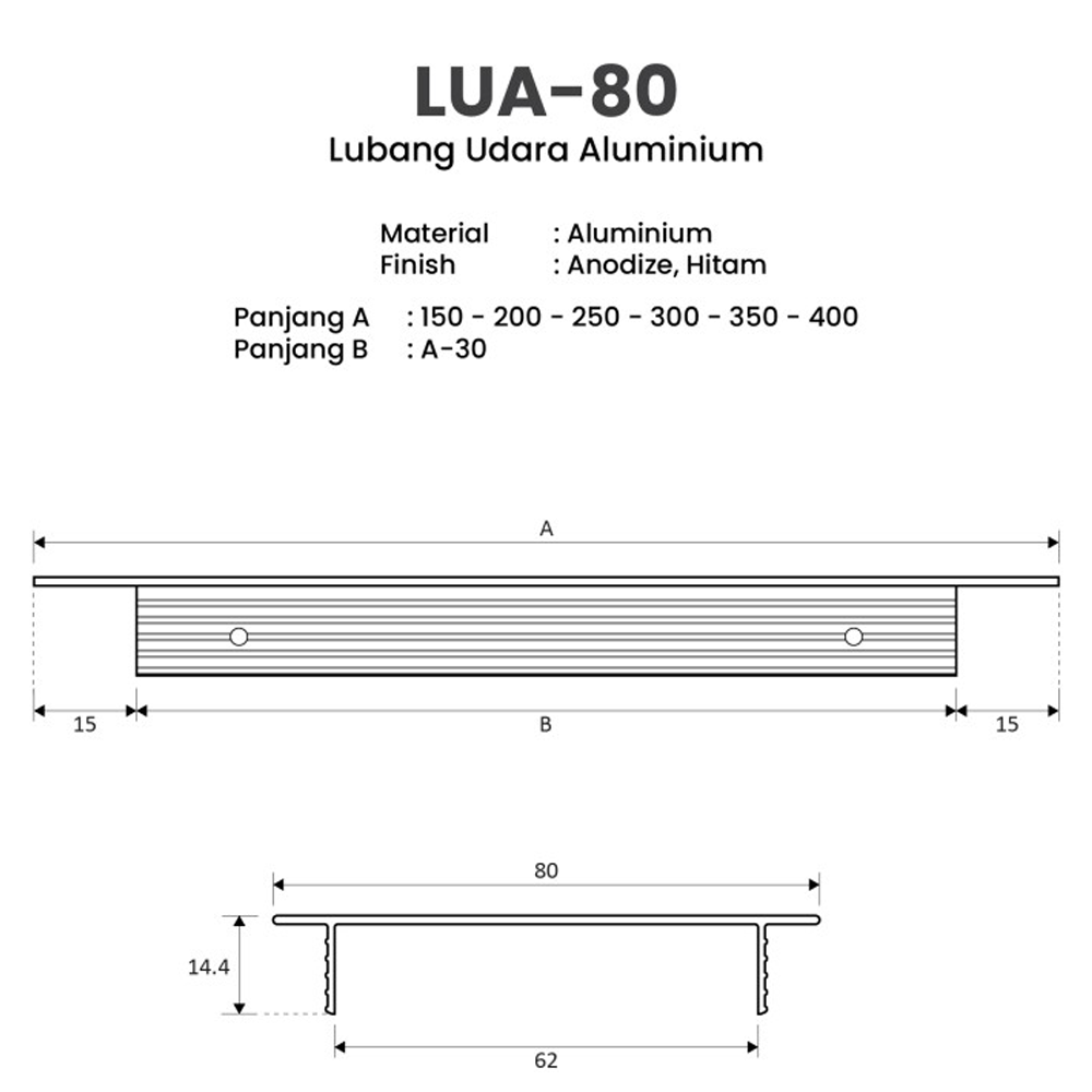 / Lubang Udara Aluminium Huben LUA 80 - 200mm (Anodize)