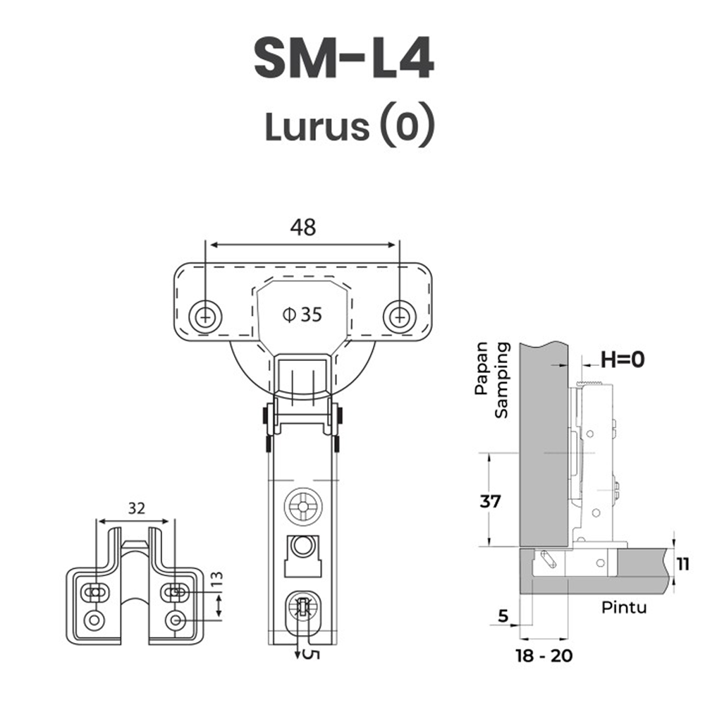 Engsel Huben Clip-On Soft Close SM-L4 - Lurus