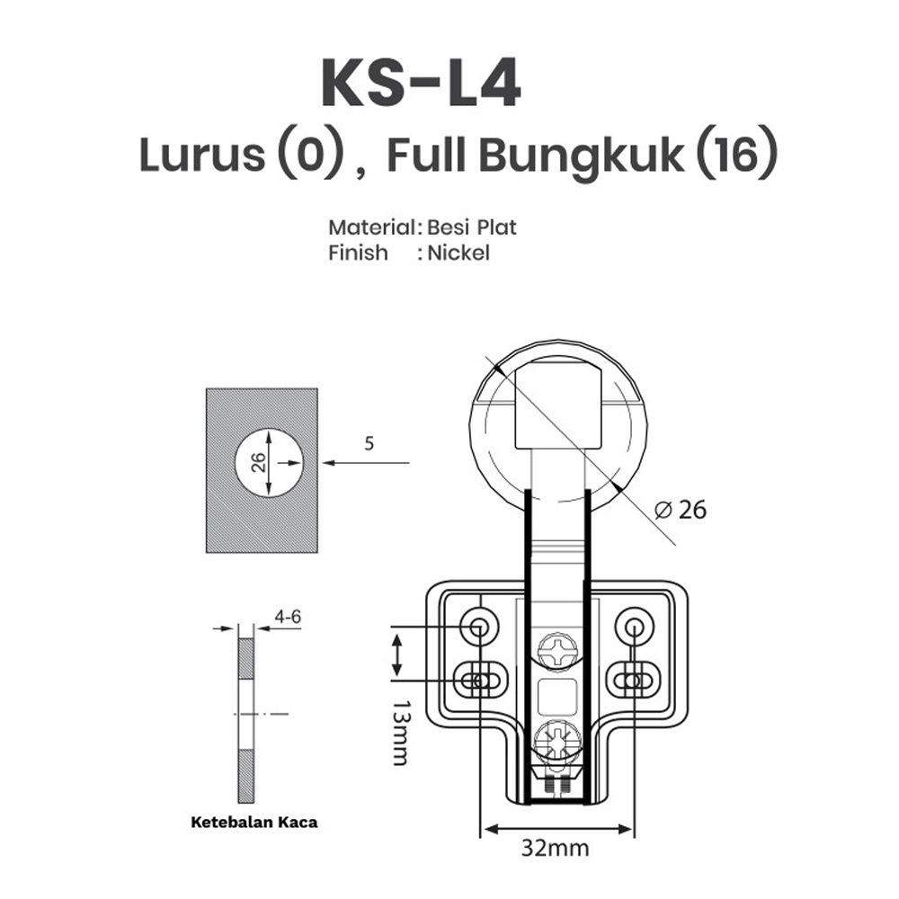 Nama barang : Engsel Sendok Kaca Softclose KS