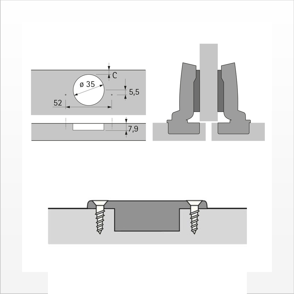 Door mounting option half overlay (B 3 mm)