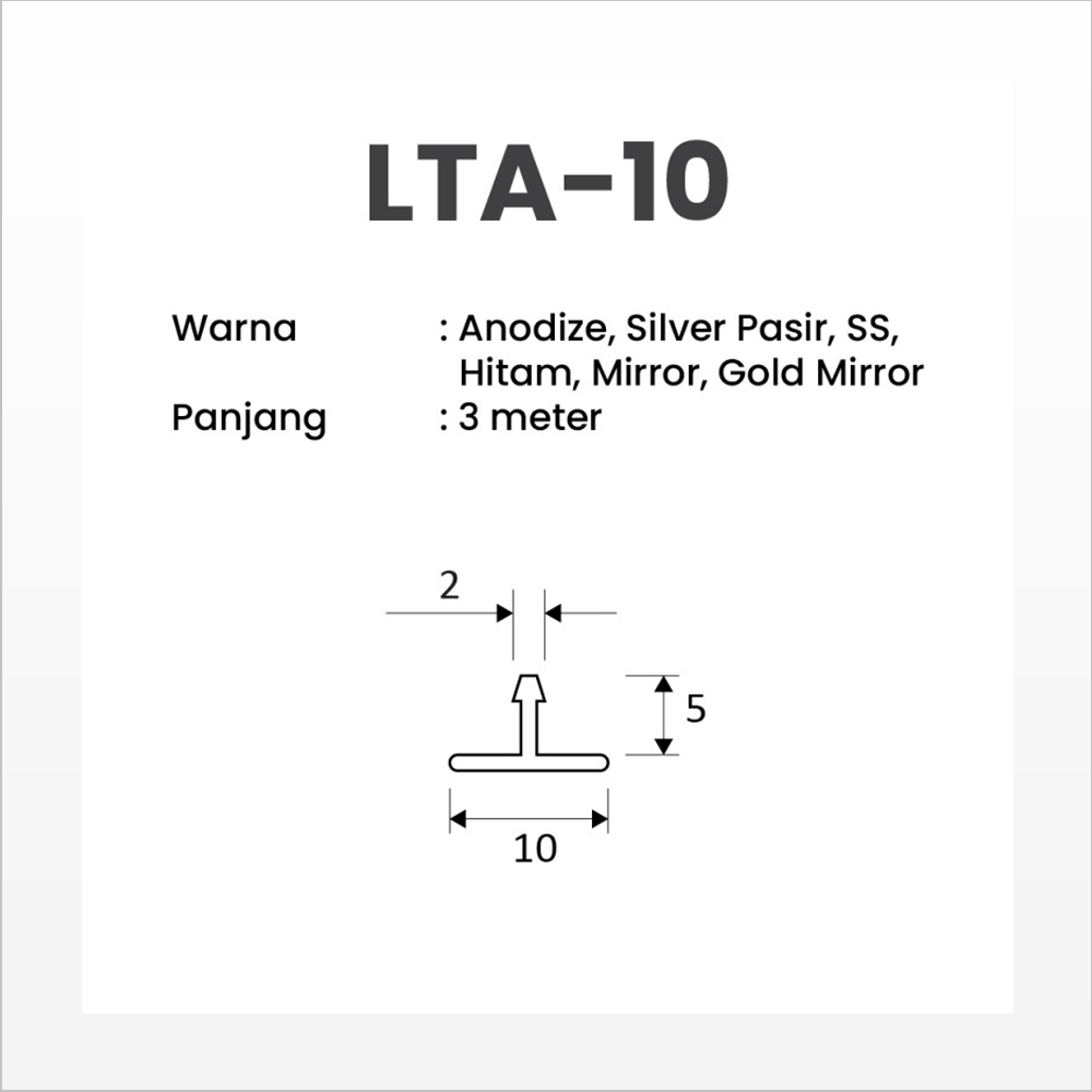 Profil Aluminium Huben 3 meter LTA-10 Anodize