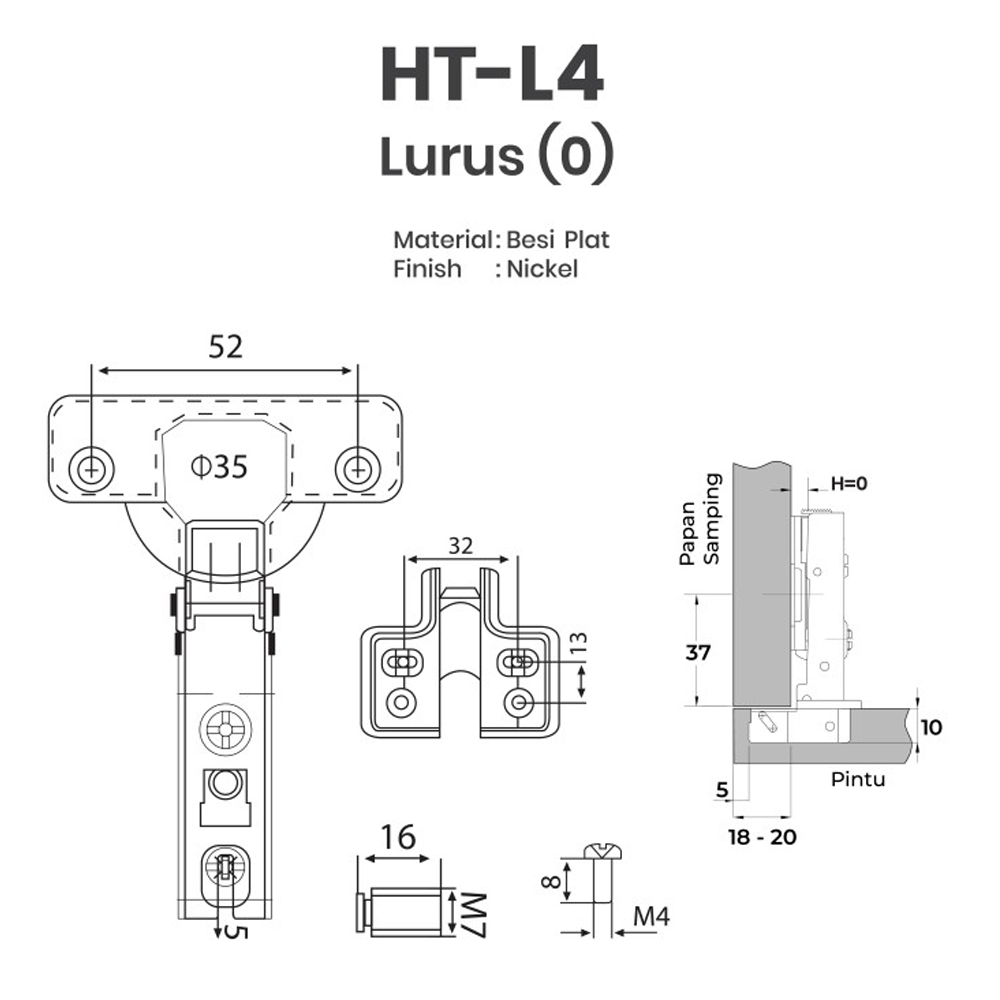 Engsel Sendok Huben HT Slide-On Lurus